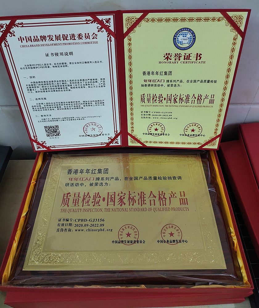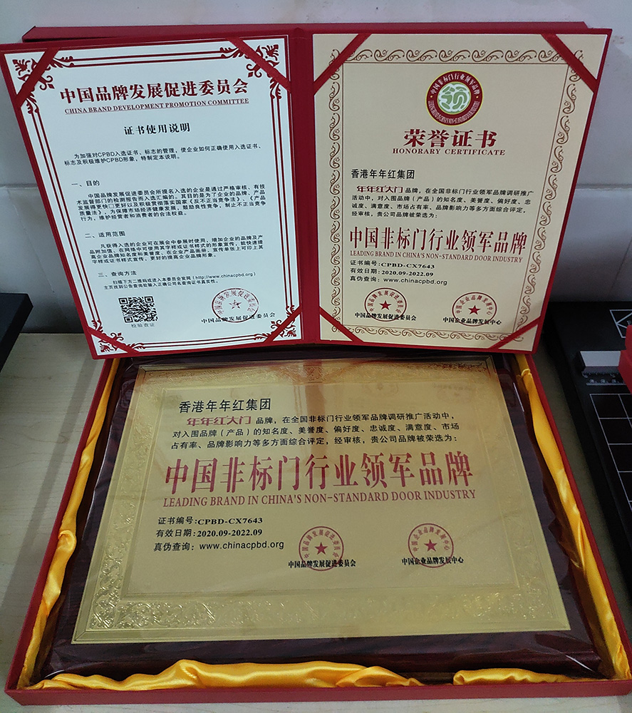 2004年:年年紅非標(biāo)門首家創(chuàng)新使用戶外轉(zhuǎn)印漆工藝,使非標(biāo)門戶外抗曬能力大大增強 |