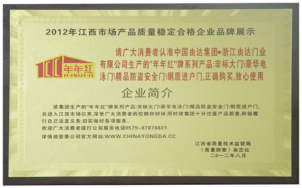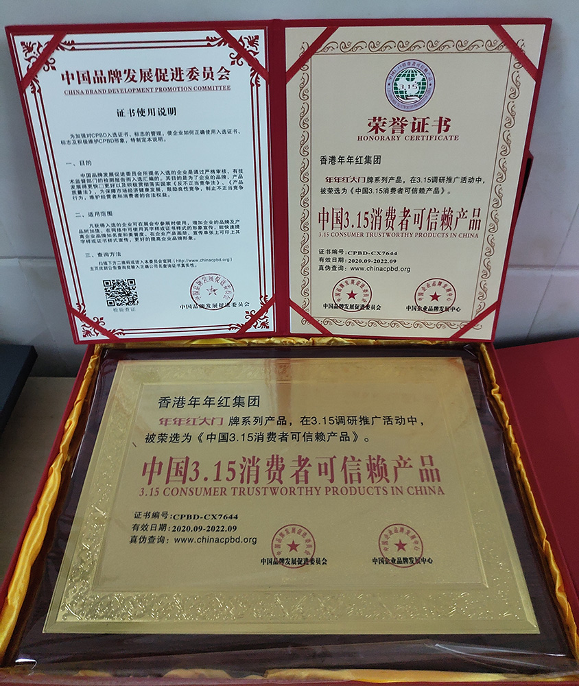 2001年:年年紅非標(biāo)門榮獲消費者最滿意產(chǎn)品 |