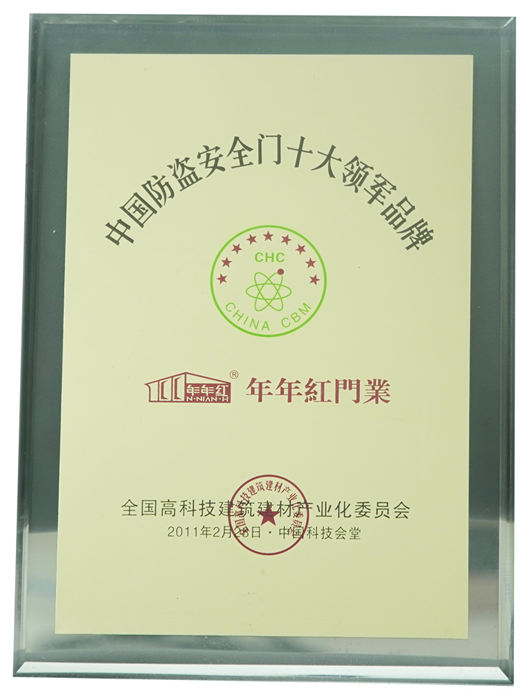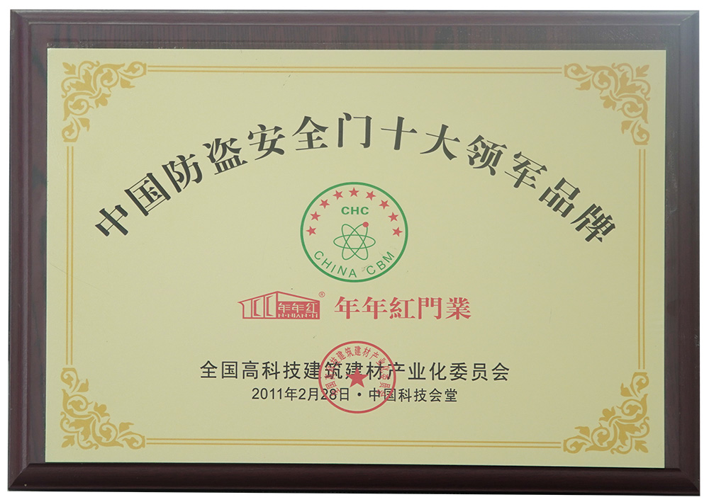 2009年:年年紅首家研發(fā)仿真轉(zhuǎn)印技術(shù),全面應(yīng)用防盜門表面,使門面色澤更加立體逼真 |